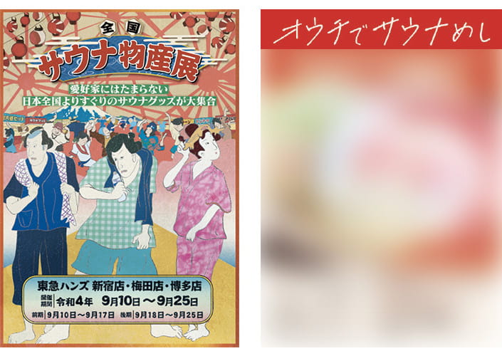 今年は全国サウナ物産展のパンフレットも作っちゃいました。顔ハメのボツ案やあの人気施設のサウナ飯レシピも大公開!おうちでサウナ飯が楽しめちゃうかも?!無料配布でなくなり次第終了となりますのでお早めにどうぞ!